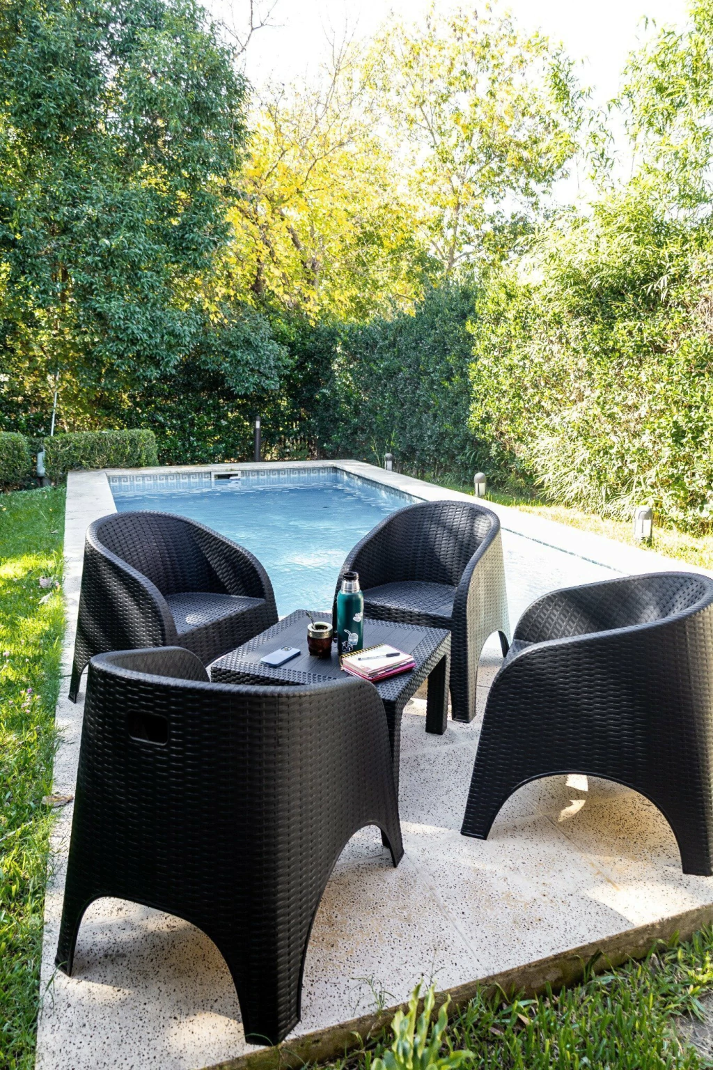 Juego de Jardín 4 Sillones simil rattan + Mesa ratona 70 x 70 Alejo