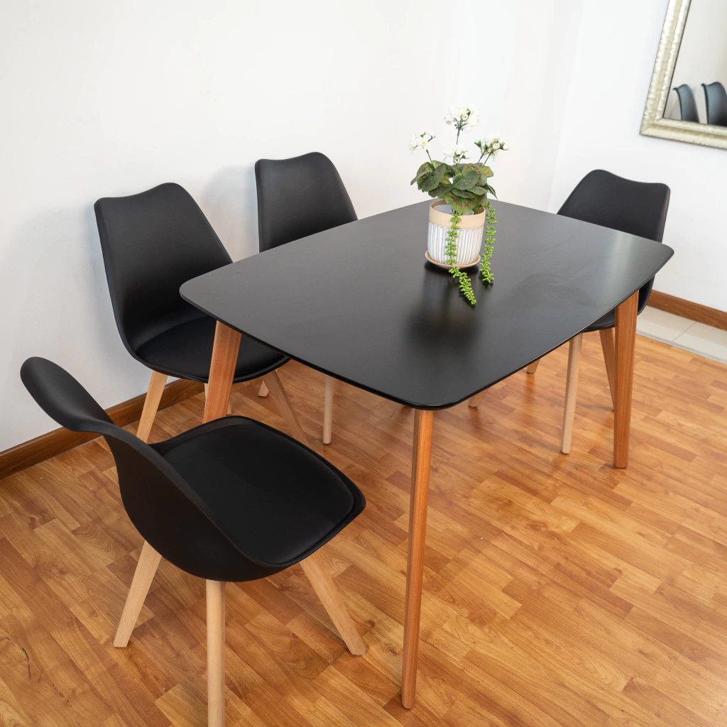 La Mesa de Comedor Claire se caracteriza por su diseño limpio y moderno, ideal para comedores, livings o espacios de trabajo con estilo. Su tapa laqueada aporta un acabado brillante y elegante, mientras que sus patas de madera maciza de paraíso aseguran estabilidad y calidez.