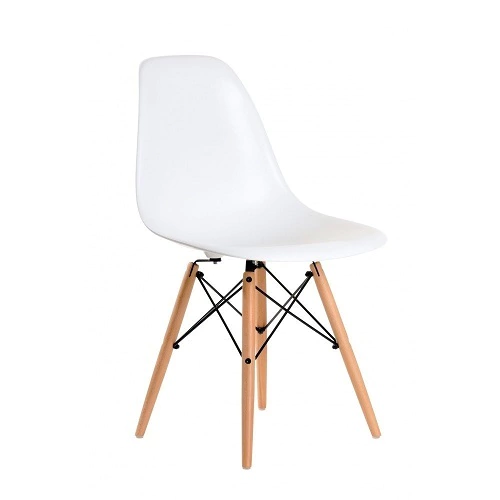 La Silla Eames es un clásico del diseño moderno, reconocida por su estilo funcional y atemporal. Combina un asiento de polipropileno reforzado con fibra de vidrio con patas de madera maciza de haya, logrando una estructura firme, cómoda y de gran atractivo visual.